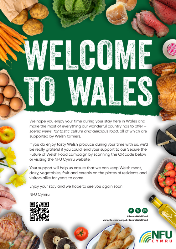 - Oes gennych chi fwthyn gwyliau neu fenter arallgyfeirio ar eich fferm? Llwythwch i lawr un o’r taflenni addewid a fwriedir ar gyfer ymwelwyr sy’n annog eich gwesteion i fwynhau bwyd o Gymru yn ystod eu gwyliau gyda chi ac i lofnodi deiseb yr ymgyrch hefyd.