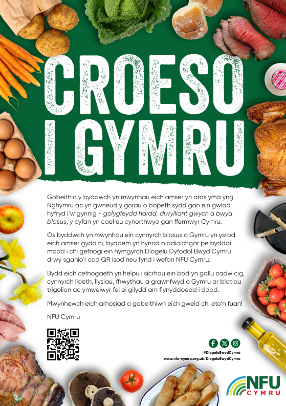 Dywedodd Aled Jones, Llywydd NFU Cymru: “Boed e’n Gig Oen a Chig Eidion Cymru PGI byd-enwog, yn Datws cynnar PGI Sir Benfro, yn gig dofednod neu’n wyau, yn llaeth Cymreig blasus, iach, ein cawsiau blasus Cymreig, ein cnydau grawn neu’r genhinen fach ddi-nod – mae Cymru yn enwog am fwyd lleol o ansawdd uchel. Mae’n rhywbeth y gall y wlad gyfan fod yn falch ohono.