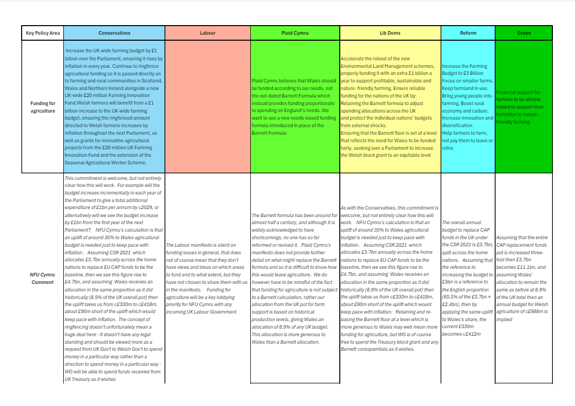 NFU Cymru has provided further analysis of each party's manifesto. Members can view the analysis below.
