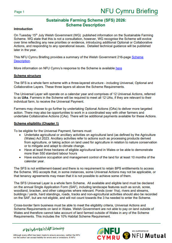 Tuesday 15 July saw Welsh Government publish further information, including payment rates and details of the transition, for the Sustainable Farming Scheme SFS – the primary source of government support for Welsh farming starting in 2026.