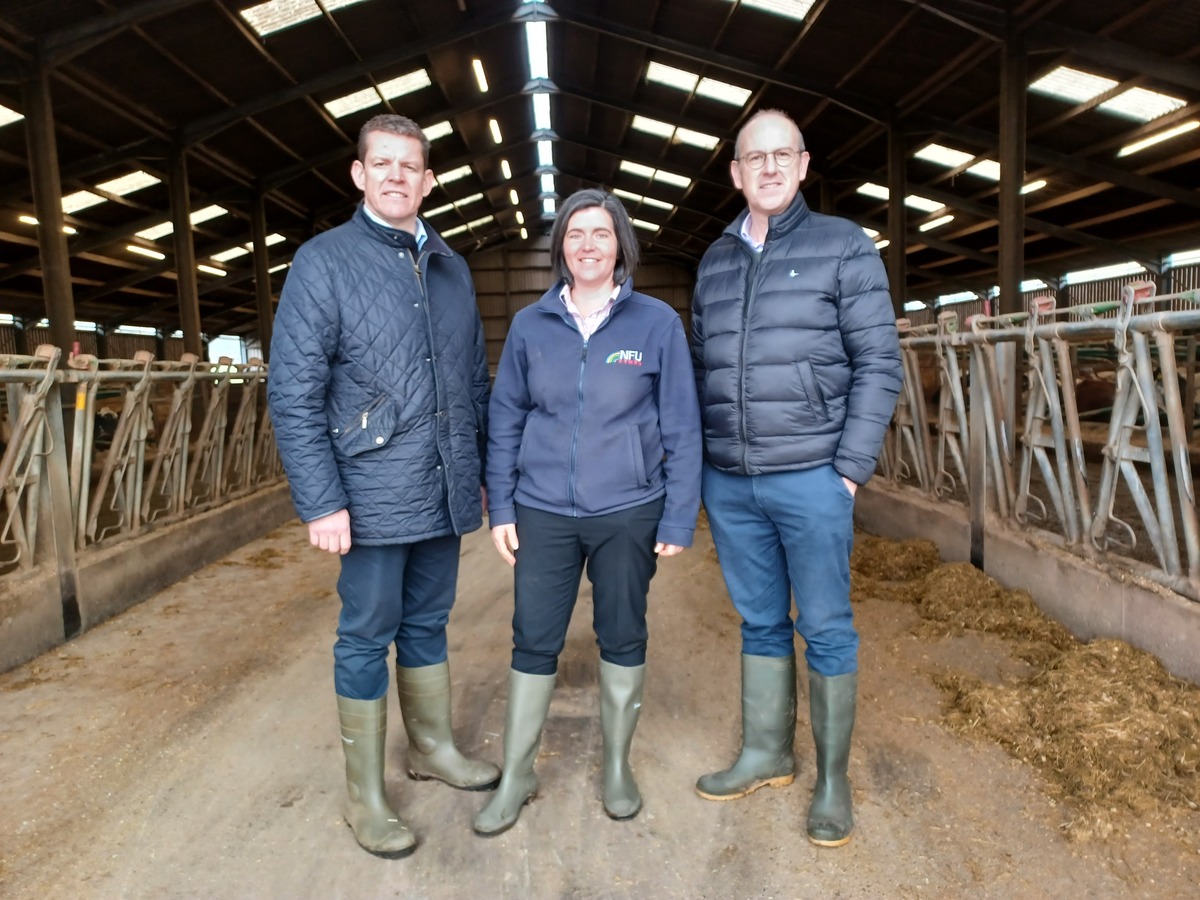 Rhun Ap Iorwerth MS and Llyr Gruffydd MS on farm with Abi Reader