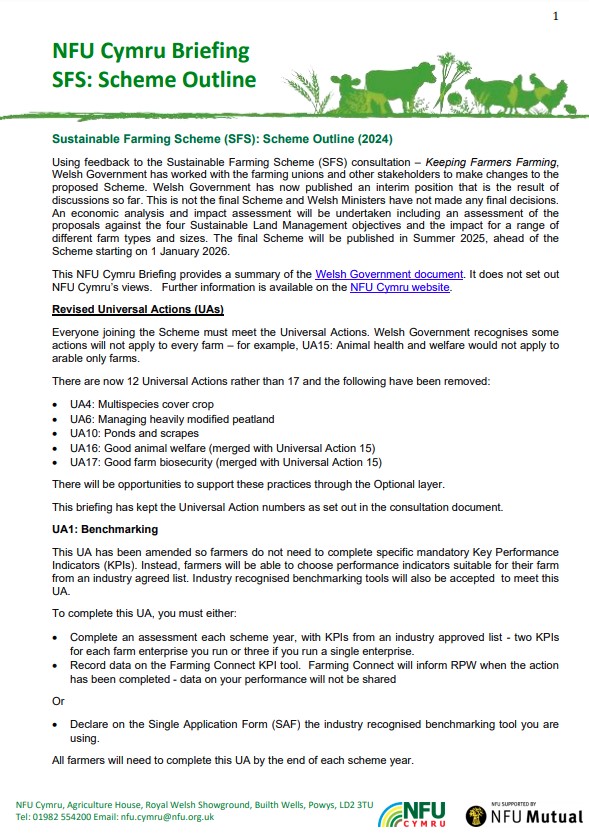 In conclusion, NFU Cymru President Aled Jones said: “Today marks an important step forward in the development of the SFS. Whilst there remains a huge amount of work to be done on many aspects of the scheme, including the detail under each Universal Action and payment rates, I am confident that if we continue to work in partnership the SFS can help to deliver on our ambitions for food, nature, climate and communities.”