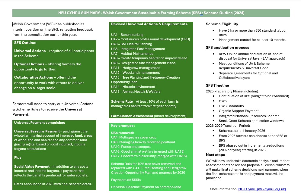 NFU Cymru has put in place a series of roadshows the length and breadth of Wales early next month to share with members the updated Sustainable Farming Scheme Outline, taking the views of members ahead of the next phase of work that will begin in the New Year.