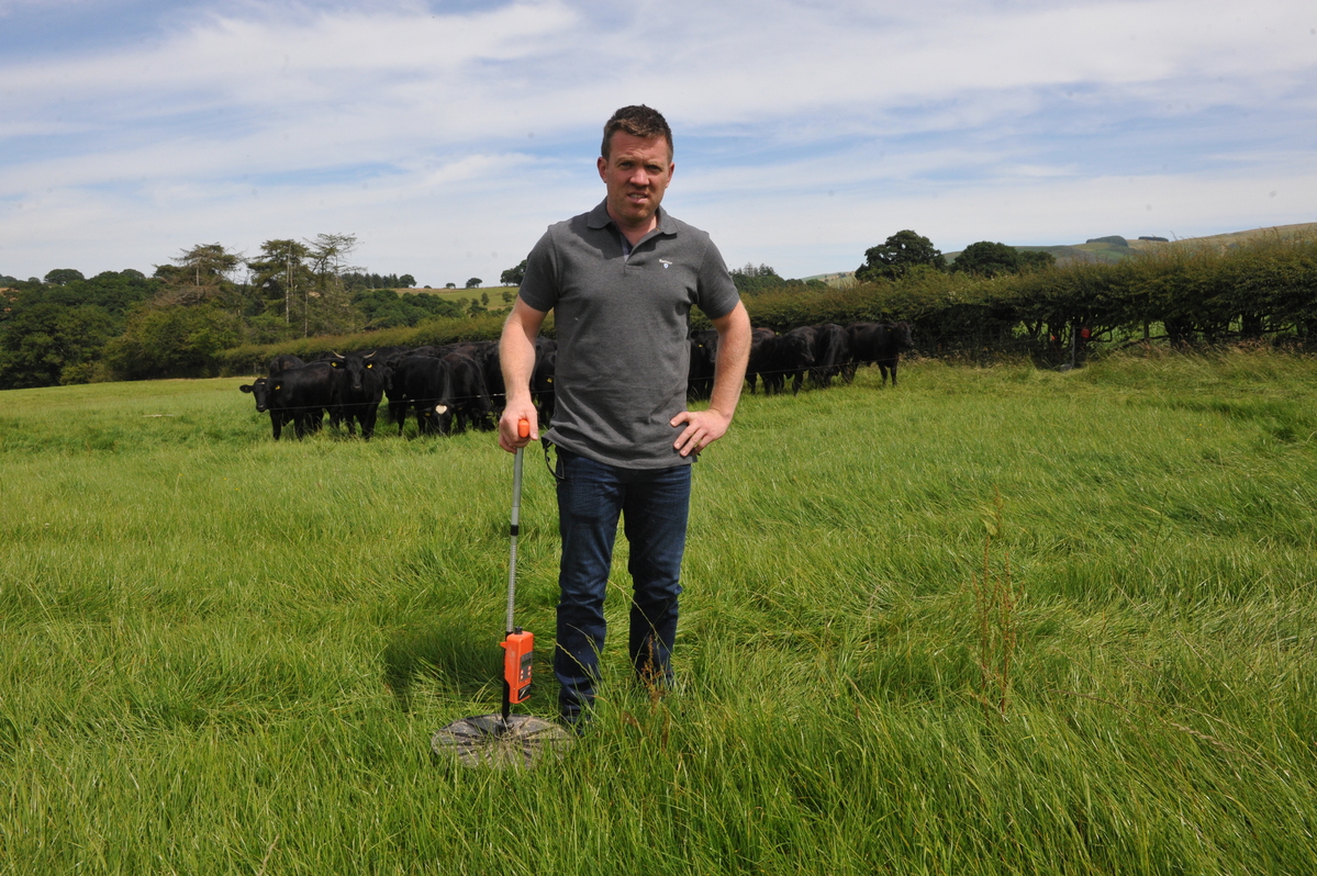 Neil uses a plate meter to measure farm grass cover every two weeks to ensure optimum utilisation along the grazing platform. Agrinet software is used to manage grass.
